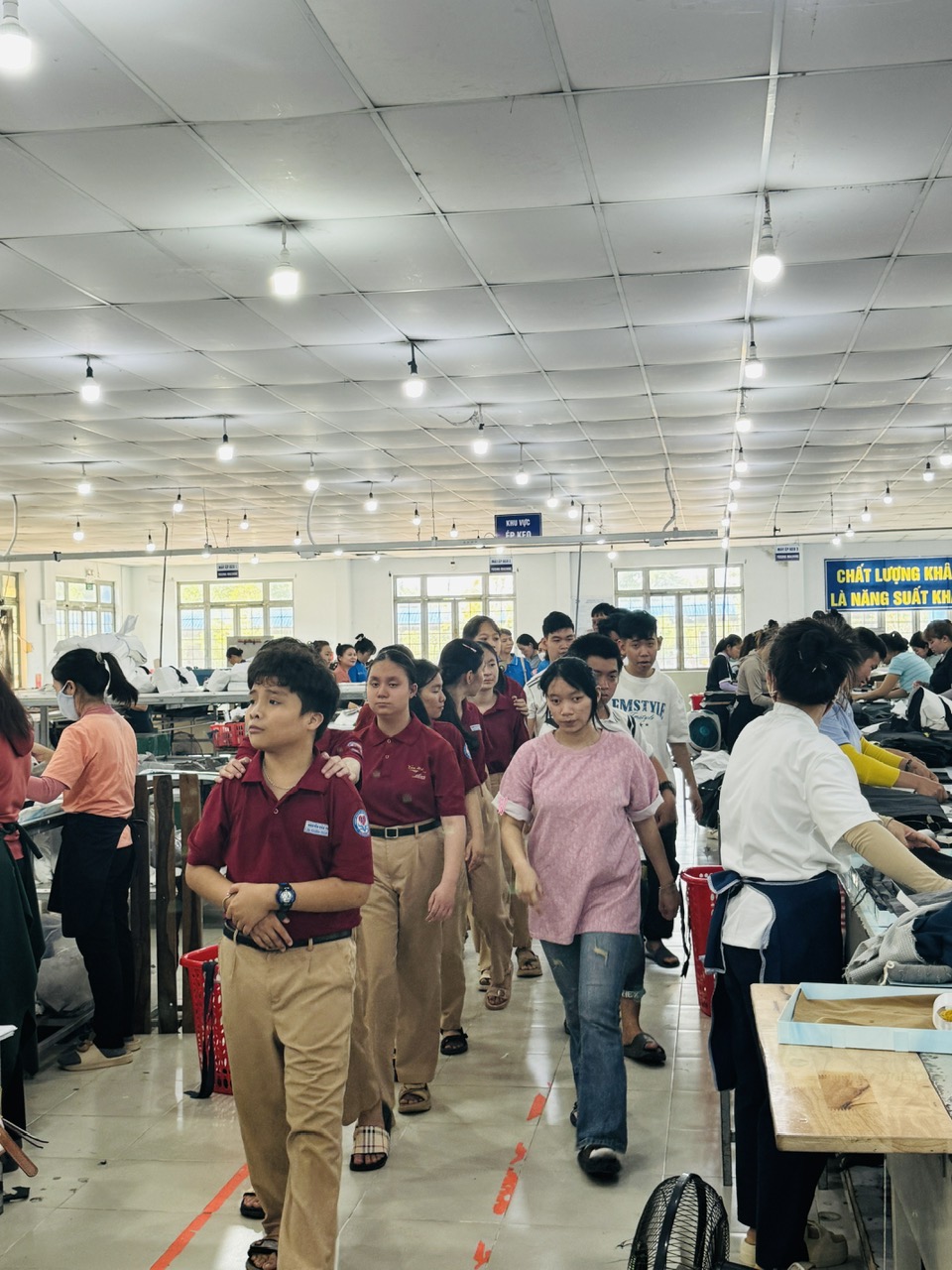 Tại đây, các em được tìm hiểu quy trình sản xuất may mặc, quan sát môi trường làm việc thực tế và giao lưu cùng công nhân. Hoạt động không chỉ giúp học sinh mở rộng hiểu biết về nghề nghiệp mà còn góp phần định hướng tương lai, rèn luyện kỹ năng xã hội và tăng sự tự tin trong hoà nhập cộng đồng.