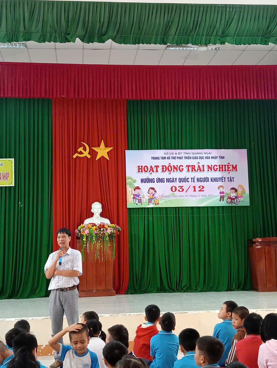 Hưởng ứng Ngày Quốc tế Người khuyết tật (3/12/1992 – 3/12/2025), chiều ngày 02/12, Trung tâm Hỗ trợ Phát triển Giáo dục Hòa nhập tỉnh Quảng Ngãi tổ chức các hoạt động ý nghĩa nhằm nâng cao nhận thức cộng đồng về quyền của người khuyết tật, đồng thời tạo sân chơi trải nghiệm giúp các em tự tin hơn trong học tập và hòa nhập xã hội với chủ đề: “Tôn trọng khác biệt – Kết nối yêu thương”
