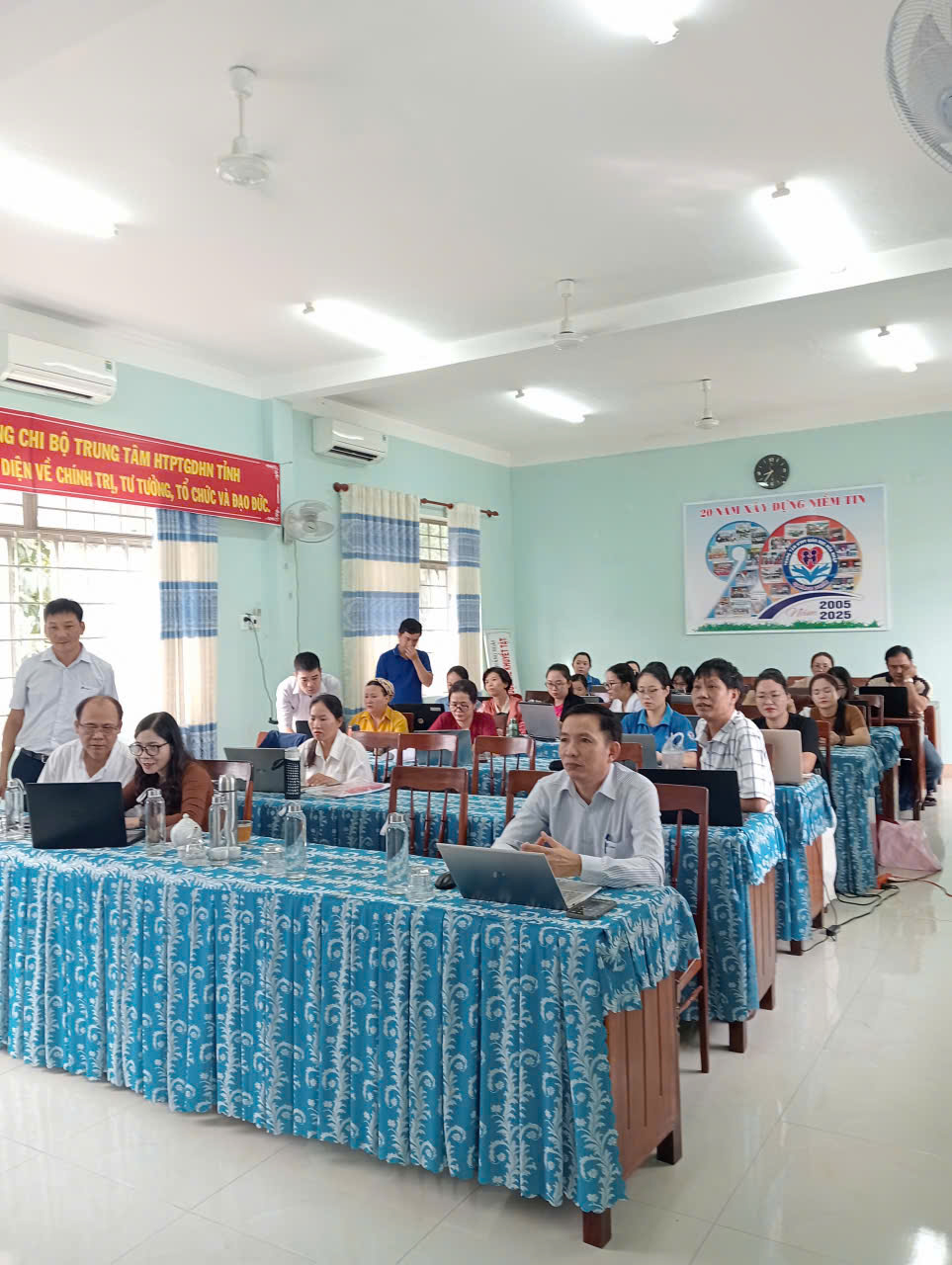 Thực hiện Công văn số 1573/SGDĐT-GDMNTH ngày 14/10/2025 của Sở Giáo dục và Đào tạo tỉnh Quảng Ngãi về việc hướng dẫn thực hiện hồ sơ, sổ sách trong các cơ sở giáo dục Mầm non và Tiểu học từ năm học 2025–2026. Sáng ngày 08/11/2025, Trung tâm Hỗ trợ Phát triển Giáo dục Hòa nhập tỉnh Quảng Ngãi đã tổ chức tập huấn về thực hiện số hóa hồ sơ, sổ sách cho toàn thể cán bộ, giáo viên và nhân viên của Trung tâm.