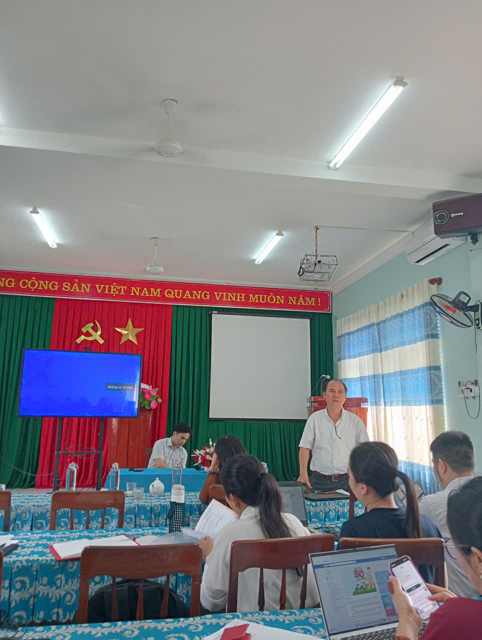 Buổi tập huấn được tổ chức tại phòng Hội trường Trung tâm, với mục tiêu hướng dẫn xây dựng cây thư mục quản lý trường học, thực hiện lưu trữ hồ sơ giáo dục trên nền tảng số, triển khai sử dụng chữ ký số, chữ ký điện tử và các nội dung liên quan đến chuyển đổi số trong công tác quản lý và giảng dạy.
