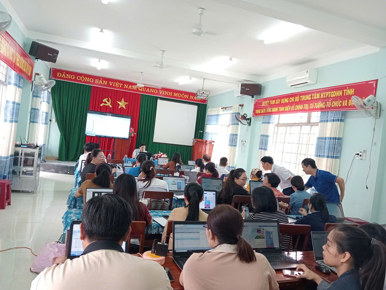 Hoạt động tập huấn không chỉ giúp đội ngũ viên chức nắm vững quy trình thực hiện số hóa mà còn góp phần nâng cao năng lực số, đổi mới phương thức làm việc, hướng tới xây dựng một môi trường giáo dục hiện đại, chuyên nghiệp và hiệu quả tại Trung tâm.
