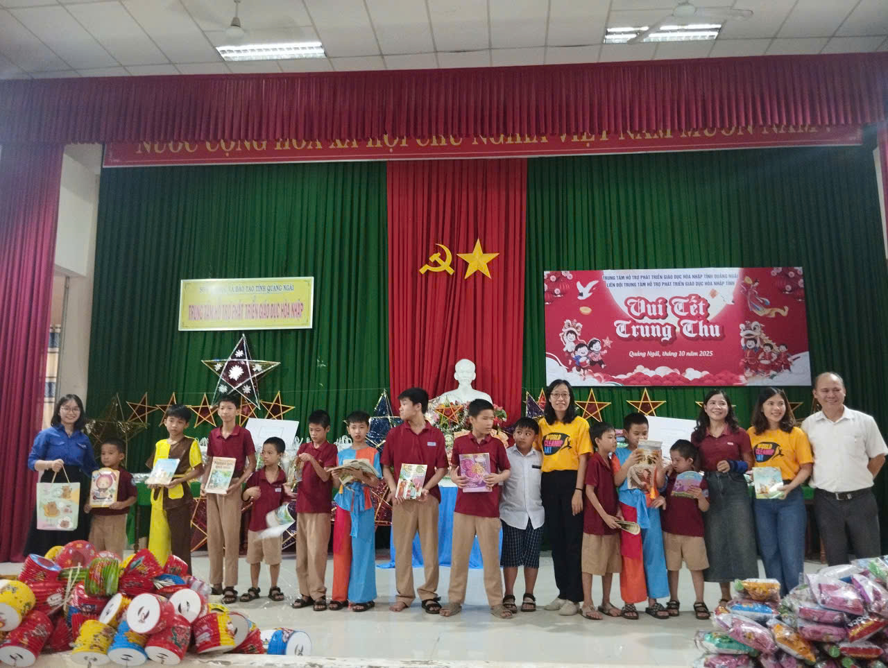 Chiều ngày 03/10/2025, Trung tâm Hỗ trợ Phát triển Giáo dục Hòa nhập tỉnh Quảng Ngãi đã rộn ràng tổ chức chương trình “Vui Tết Trung Thu” cho toàn thể học sinh.